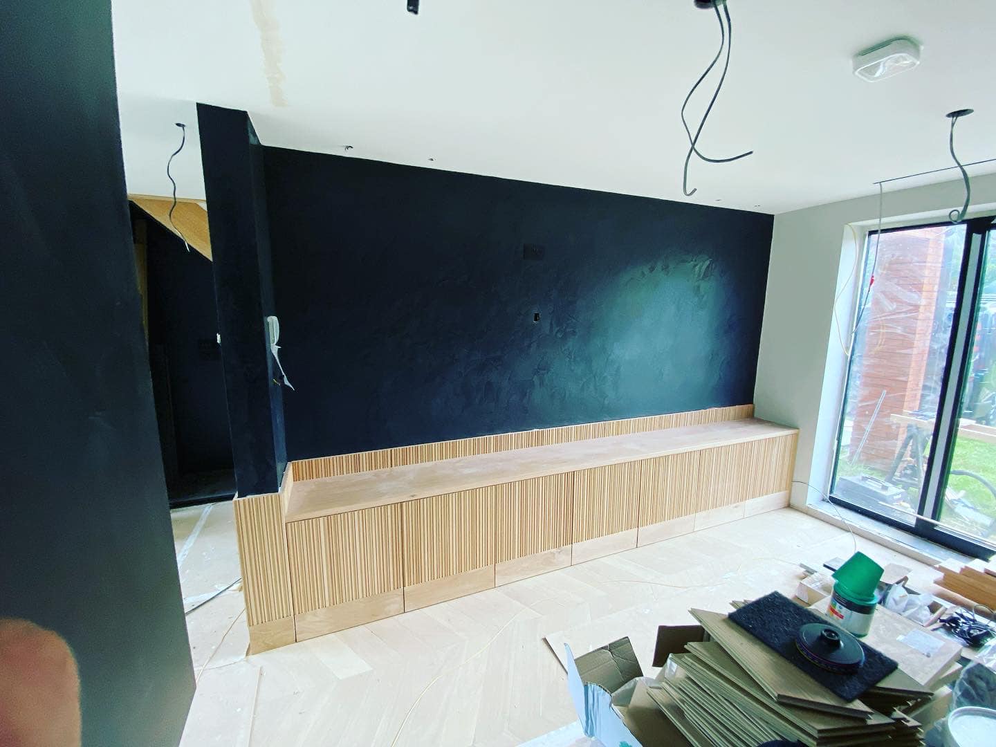 Sam recently worked on my living room, creating a stunning custom media wall and installing brand new flooring — and the results are absolutely exceptional.